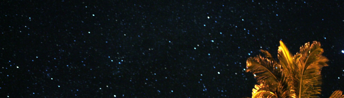 The only thing that keeps me from passing out is the beautiful view; the stars above my head and all around me (am I hallucinating because of the cold water, or did the drops of water turn into snow…?), the moon reflecting off of the wild black water, creating an interesting contrast with the matte black of the beach, and the sound of palm trees swaying in the mild wind up above.