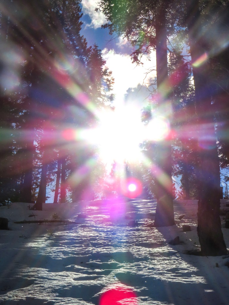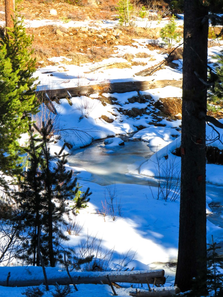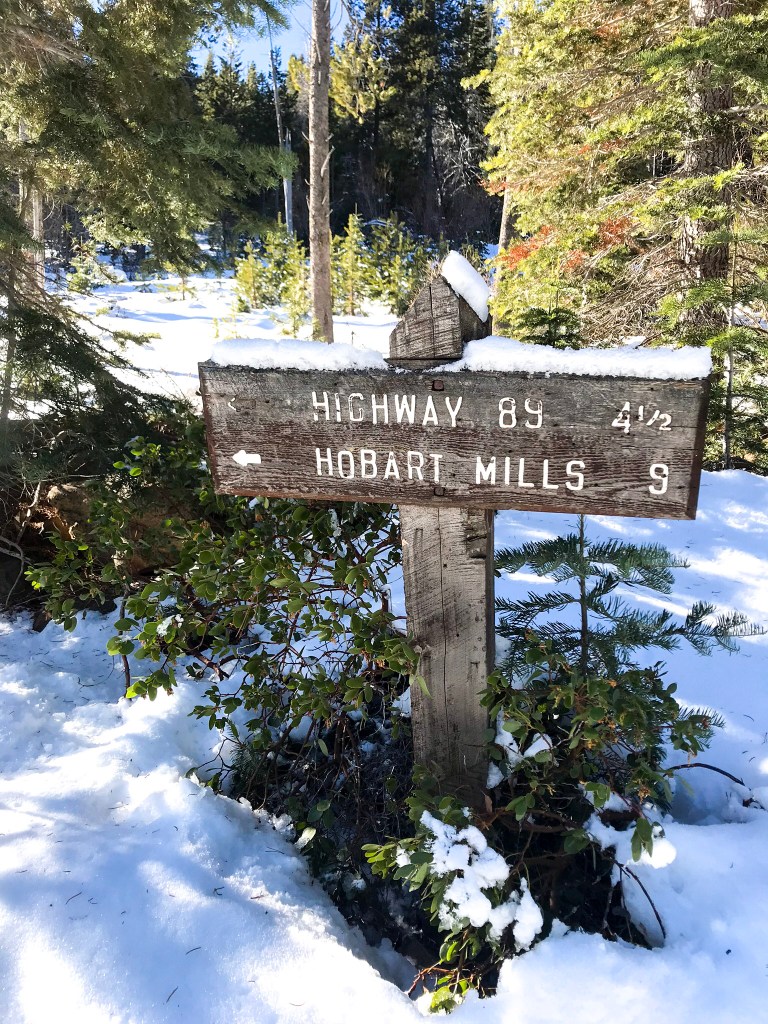 This planning brought me to last year’s hike on the snow-filled Emigrant Trail. Back then, I didn’t own one single piece of clothing that would be appropriate for winter. (Just to let you know; I still don’t.) But I’ve at least partially mastered the science of layering, and with a rainproof jacket (that’ll work for snow, too), warm hat and borrowed winter shoes (I’d chance it in tennis shoes and gaiters if I had to but if I can keep my feet dry and warm, of course I’m going to do it!), I headed out to the Emigrant Trail.