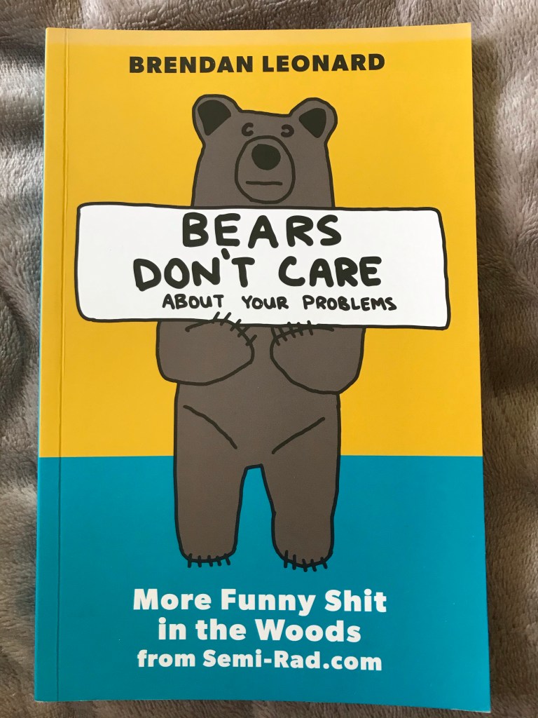 “Even if you’ve never considered the absurdity of sleeping on the ground in a place where bears live, pooping in a bag on a glacier, or trying to teach someone you love a sport that scares them to the point of loudly threatening to kill you in front of strangers, Bears Don’t Care About Your Problems will still make you laugh.” (from the back cover)