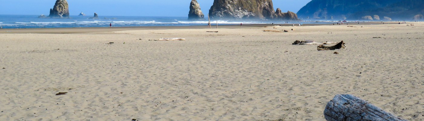 In the morning, we quietly packed up as to not wake up Ricky sleeping in his van right next to where we crashed on the rocky ground, backed out of the dead-end road past another guy sleeping in his old mini-van (who swore the night before he’d be gone by 5 a.m. but was still sleeping, blocking the entry a little) and drove about 20 minutes to what was soon become one of my favourite places: Cannon Beach.