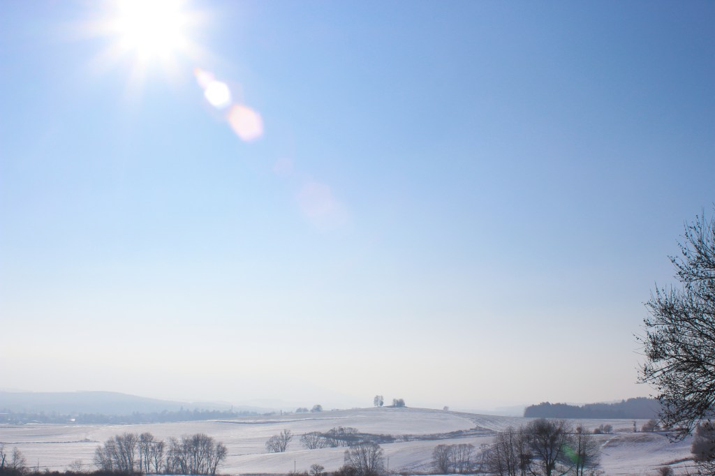 It was winter, and when we were finally done for the day with our work, our fingers frozen and noses red from the cold, his friend brought us some hot tea in a thermos and we sat in front of the house, thawing our fingers and looking across the snowy fields into the distance. Everything was quiet, except for the occasional chirp of a winter bird and and the haunted “whoo-hoo: of an owl that lived in a nearby church, and we could see a bit of haze starting to collect in the valley below us. It was only about two or three in the afternoon, but the sun was already getting ready to set, giving the landscape this magical late-afternoon glow…