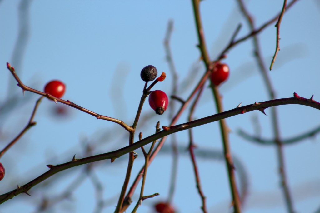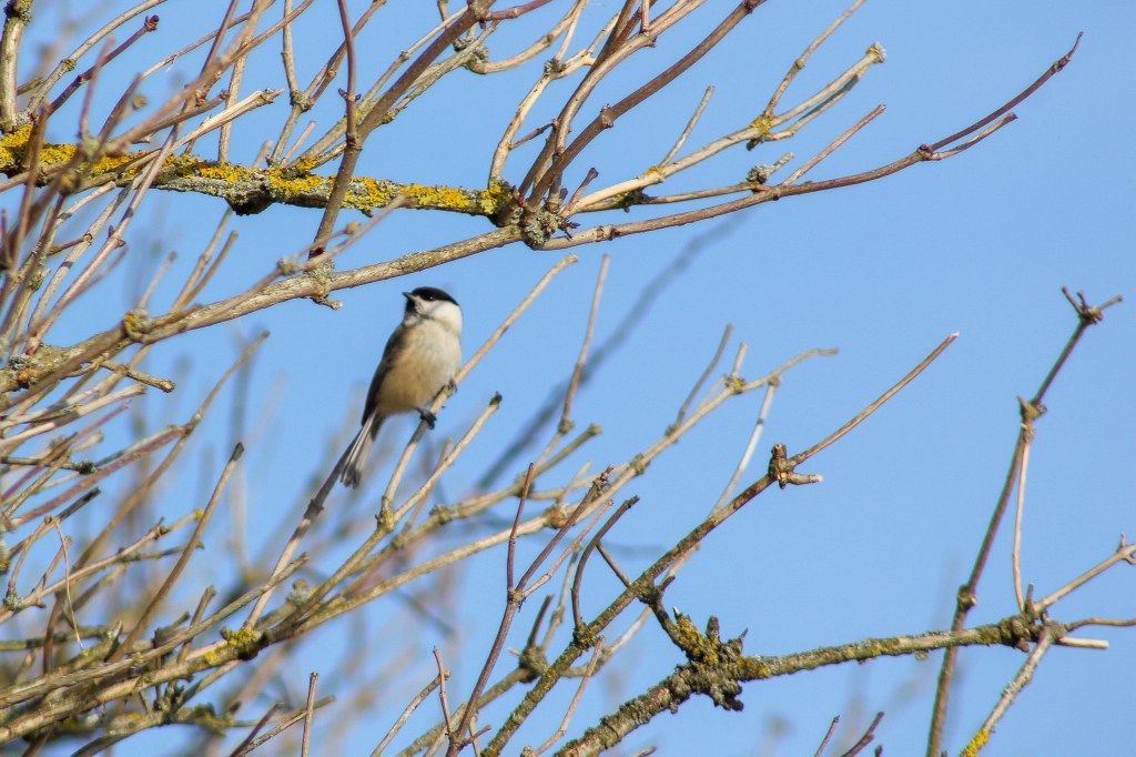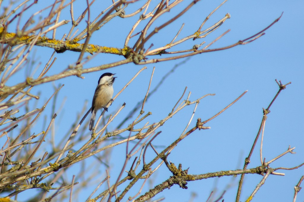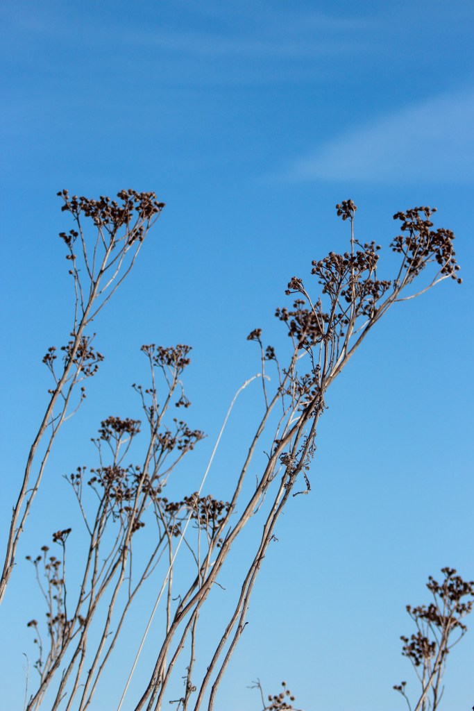 Shrubs and long-dead, dry grasses stand in a stark contrast with the white snow – a reminder of a summer long gone, and the only food source for tiny birds who rely on seeds now that insects are gone.