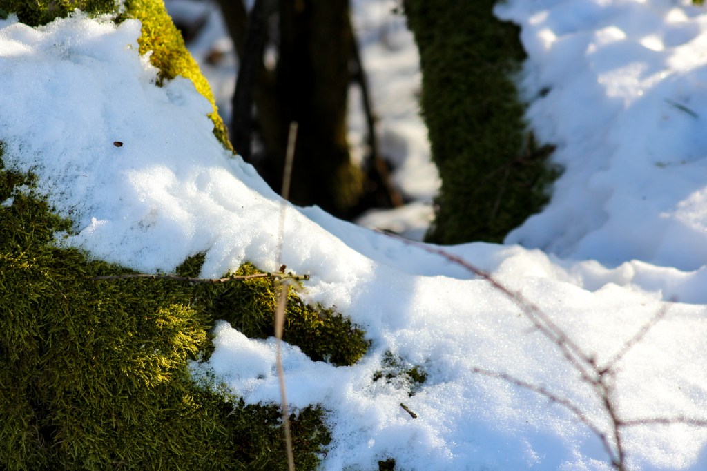 Sunrays dance through the bare branches and twigs of the sleeping trees and sketch mosaics on the ground. The play of light is never-ending; on clear nights, the moon has its turn and paints the whole landscape silver.