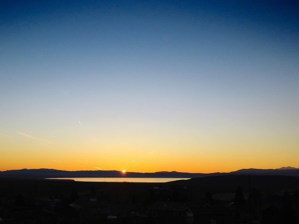 Before me, Lake Mono mirrored the soft pink and grey sky. And then the miracle of the morning came, as the colors changed into vibrant oranges and blues and the sun peeked out from behind the horizon.