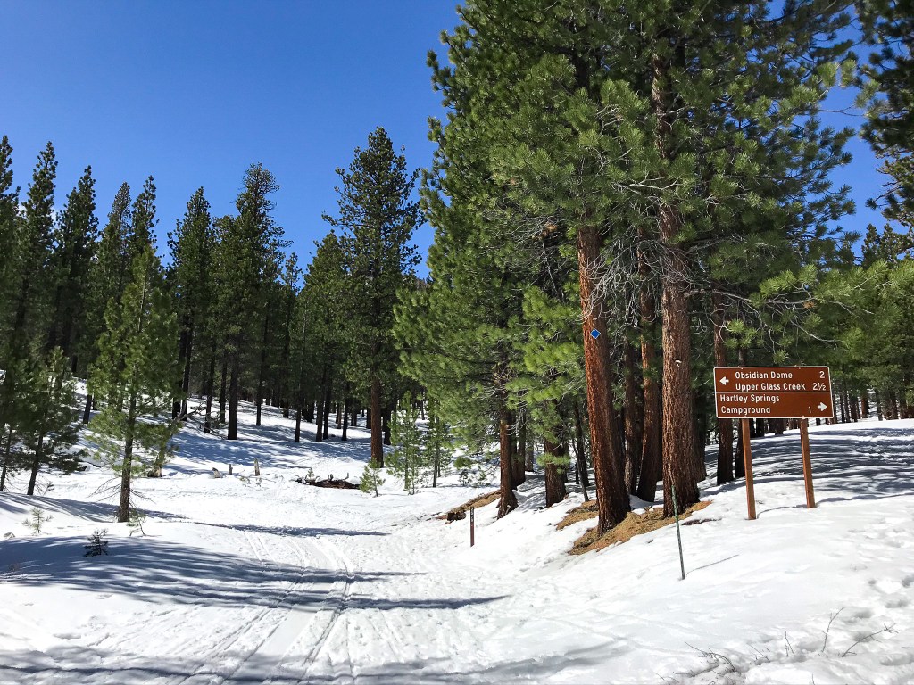 I’m a bit of a geology nerd on the side, so running through the snow to the obsidian dome was the perfect combination, at least in my head. I parked at the trailhead, laced up my Lone Peaks, and headed off on the snow-covered fireroad. I wasn’t alone there; a few cars stood in the parking lot, and a pair of friends were getting ready to head out on their skis. Are you starting to see what I so naively didn’t?