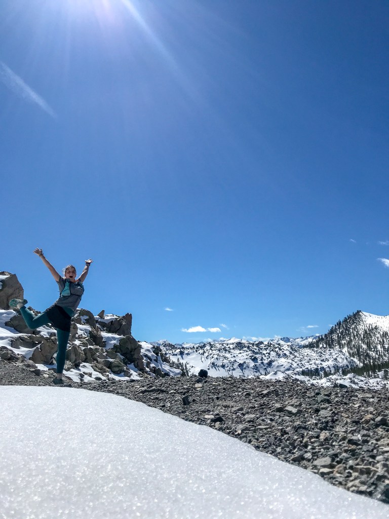 The views there were beyond beautiful (and, before you ask, no, I wasn’t cold; during the crawl through the snow, I got rid of my jacket that was securely tied to my running pack while I was sweating buckets even though it wasn’t more than 5 degrees Celsius, 40 Fahrenheit). I was happier than I thought I would be, not only because I made it, but because I was finally out of the deep snow. (Cue the realization I still had to make my way back through it.)