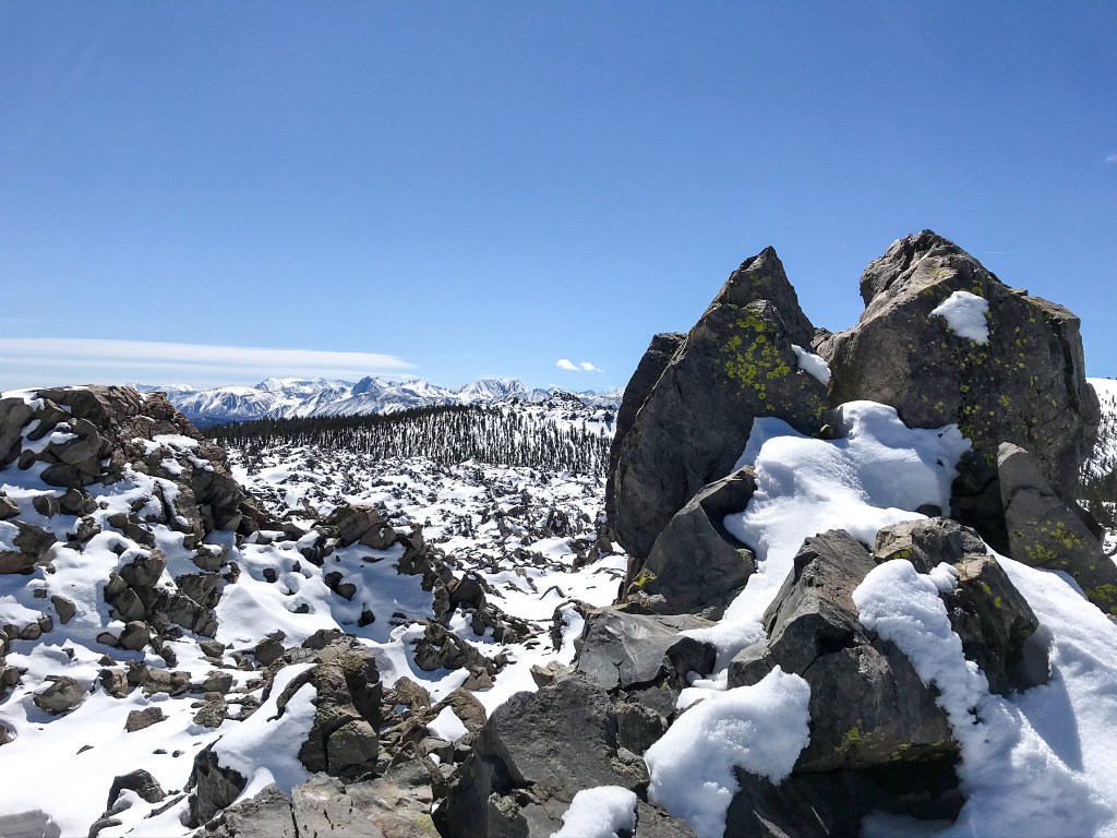 After wandering around Obsidian Dome, the time came for me to brave the deep snow once again. I’m making it sound grand here, but in reality, I was cursing myself for being so dumb as to think that it would be easy to run in the snow that was still knee-deep in some places.