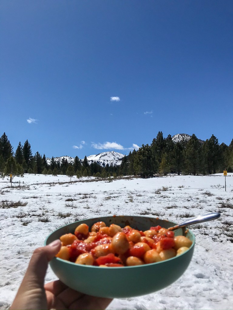 I made it back to the trailhead, slipped out of the drenched shoes and socks, propping them on the windshield to catch all the breeze and sun they could, and made myself some gnochi for lunch. A pair of dogs came around to ask me if I could share a bit of my food, and their owner asked me if I sericously went out there only in my sneakers, pointing to the windshield where my Lone Peaks dominated the view. He called his doggos away, probably worried they’d catch the crazy.