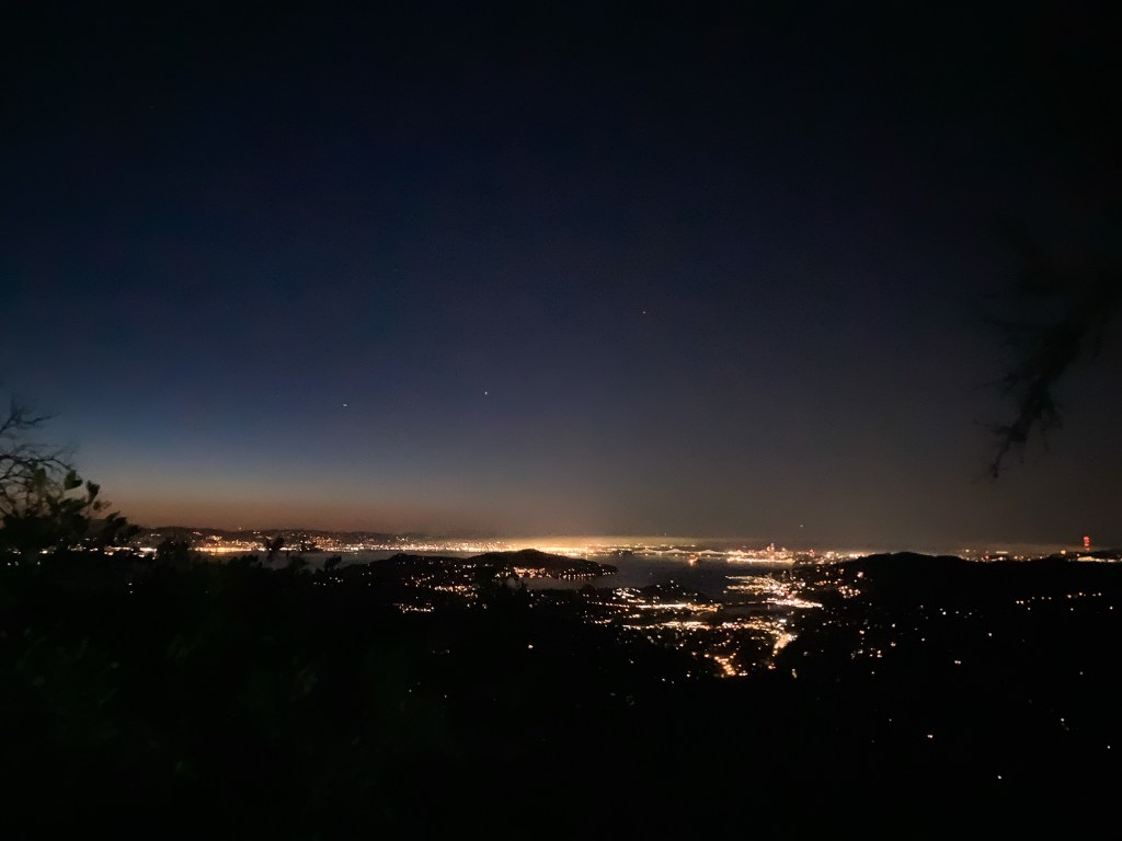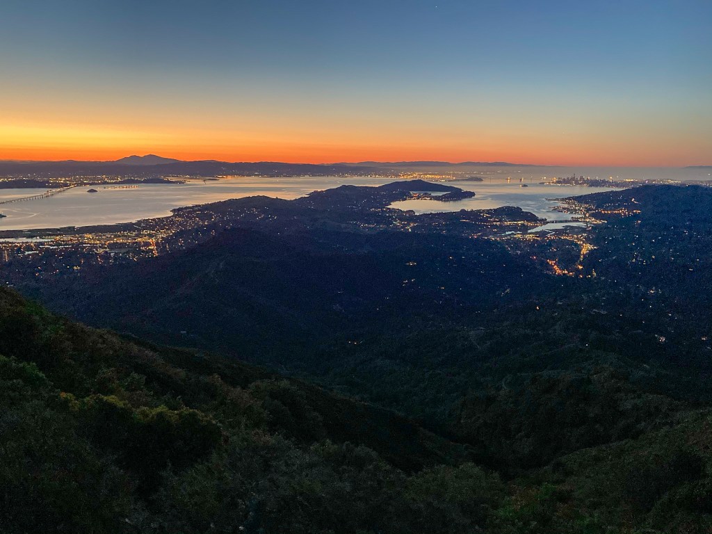 San Francisco, Oakland, Richmond, and Mill Valley shone like a golden treasure deep below. The sky in the East just started to reveal the first signs of light and a gentle breeze drew goosebumps onto my skin. The air was dry and filled with tiny specks of dust that rose from the path, disturbed by those who walked it before me.