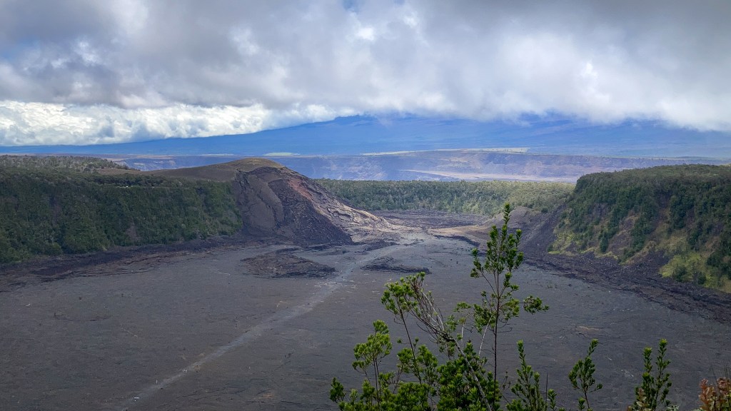 Right next to Halema‘uma‘u crater, the star of the most recent eruption, there’s the smaller Kīlauea Iki crater that last erupted in 1959. Before it was a flat plain of volcanic rock, Kīlauea Iki was a V-shaped crater filled with trees. Then, suddenly — boom. A long fissure opened in one violent event and started to spew lava. Several other vents opened and within 24 hours, joined their forces in one event.