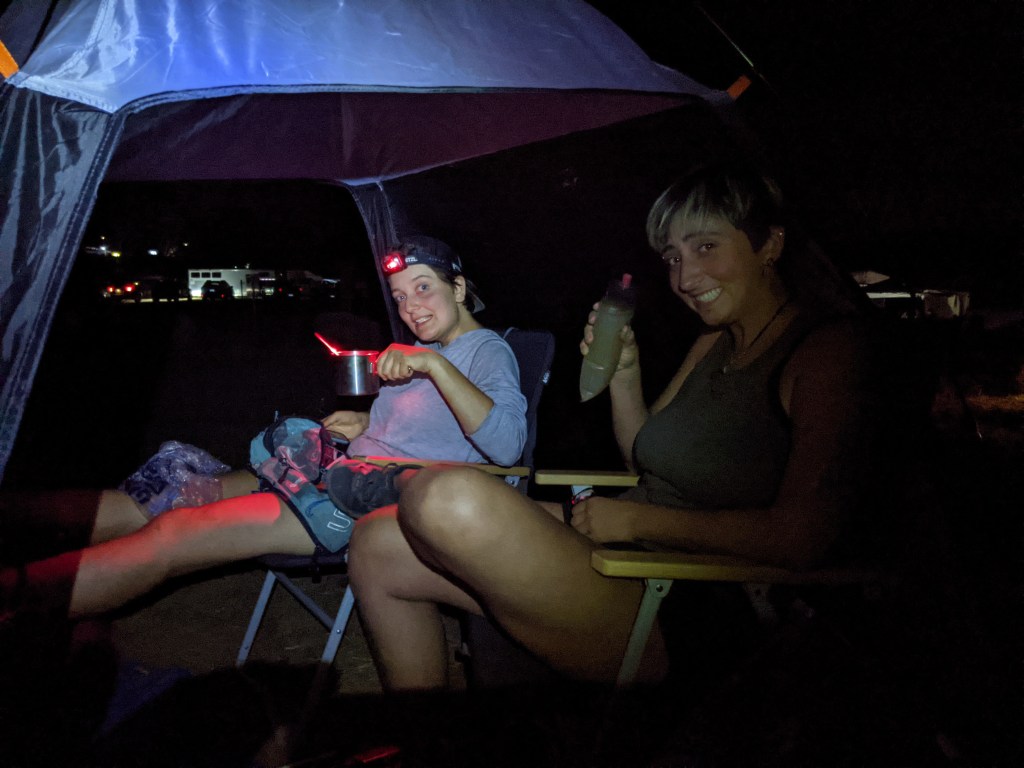 Tim started to try to force some food and water into me, as my intake slowed down considerably. Which wasn’t good because even in the middle of the night, it was still above 80 degrees.