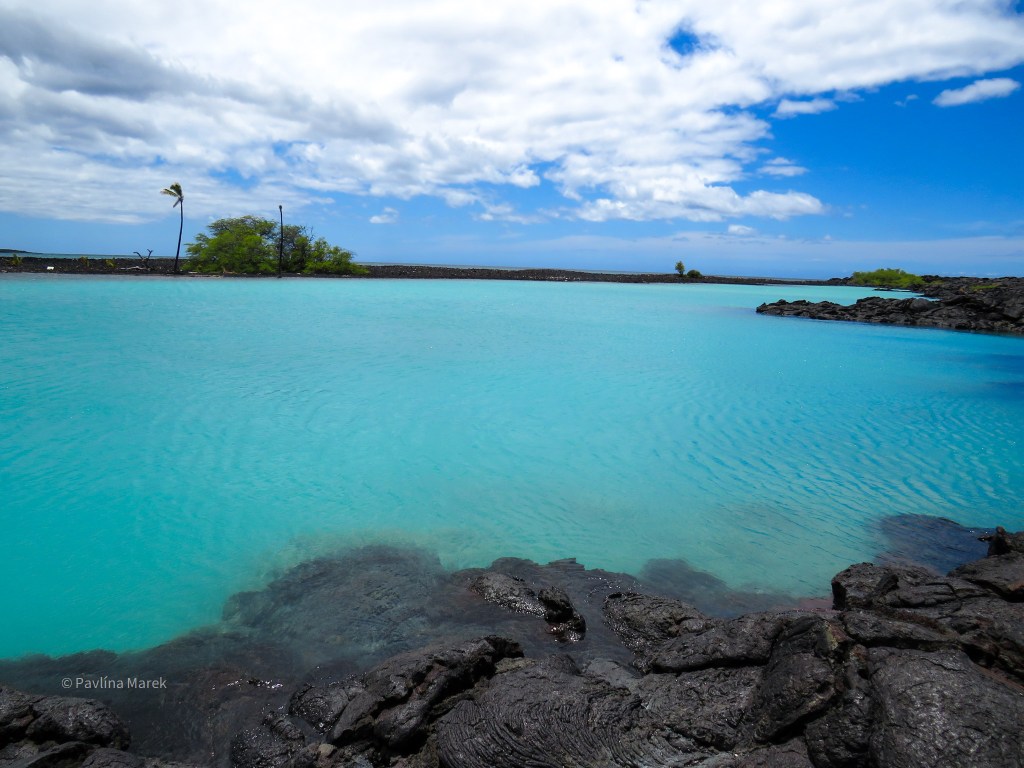 We settled down on one of the huge pahoehoe lava pillows on the side of Wainanalii Pond. The cove owes its milky-blue water to the fact that salt water and fresh water mix there, creating the perfect conditions for Mother Nature to give us a glimpse of this beautiful color.