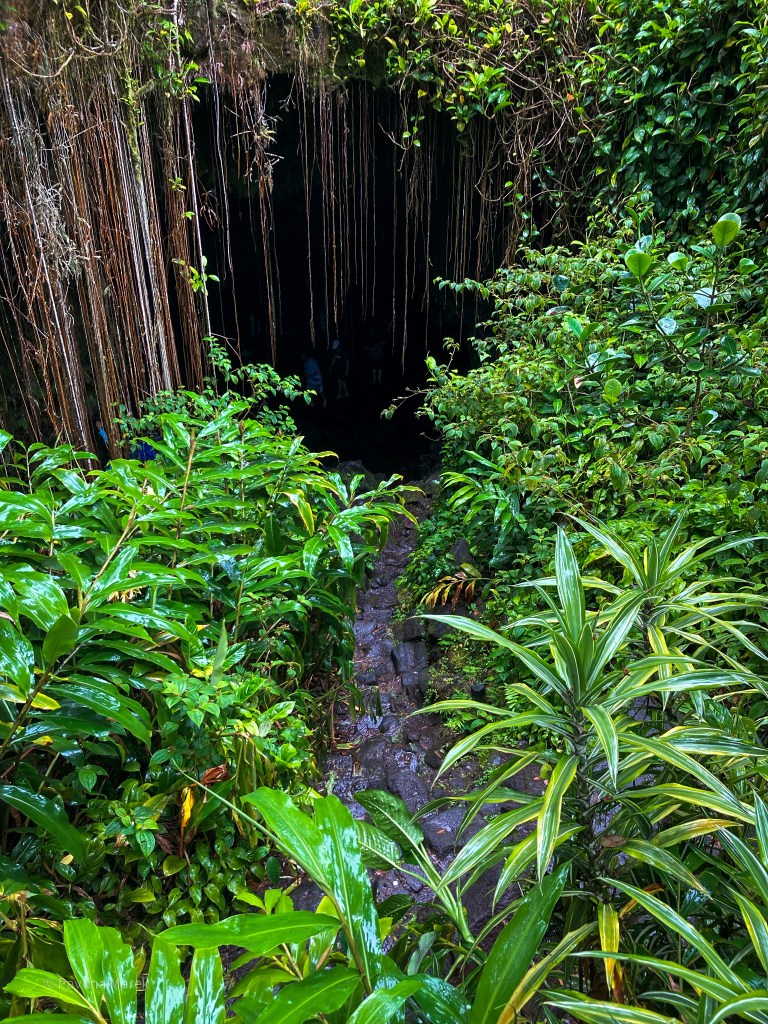 Everyone seemed a bit tired but agreed to stop anyway. Until today, I can’t tell if it was because they were genuienly curious or if it was because they knew I loved that stuff. I navigated Ki and we parked on the side of the road under the gigantic tree that stayed in my memory clear as day, and then took everyone down into the lava tubes, showing them a small run-off lava tube in the floor and, through answering questions, giving them an unplanned mini-tour.