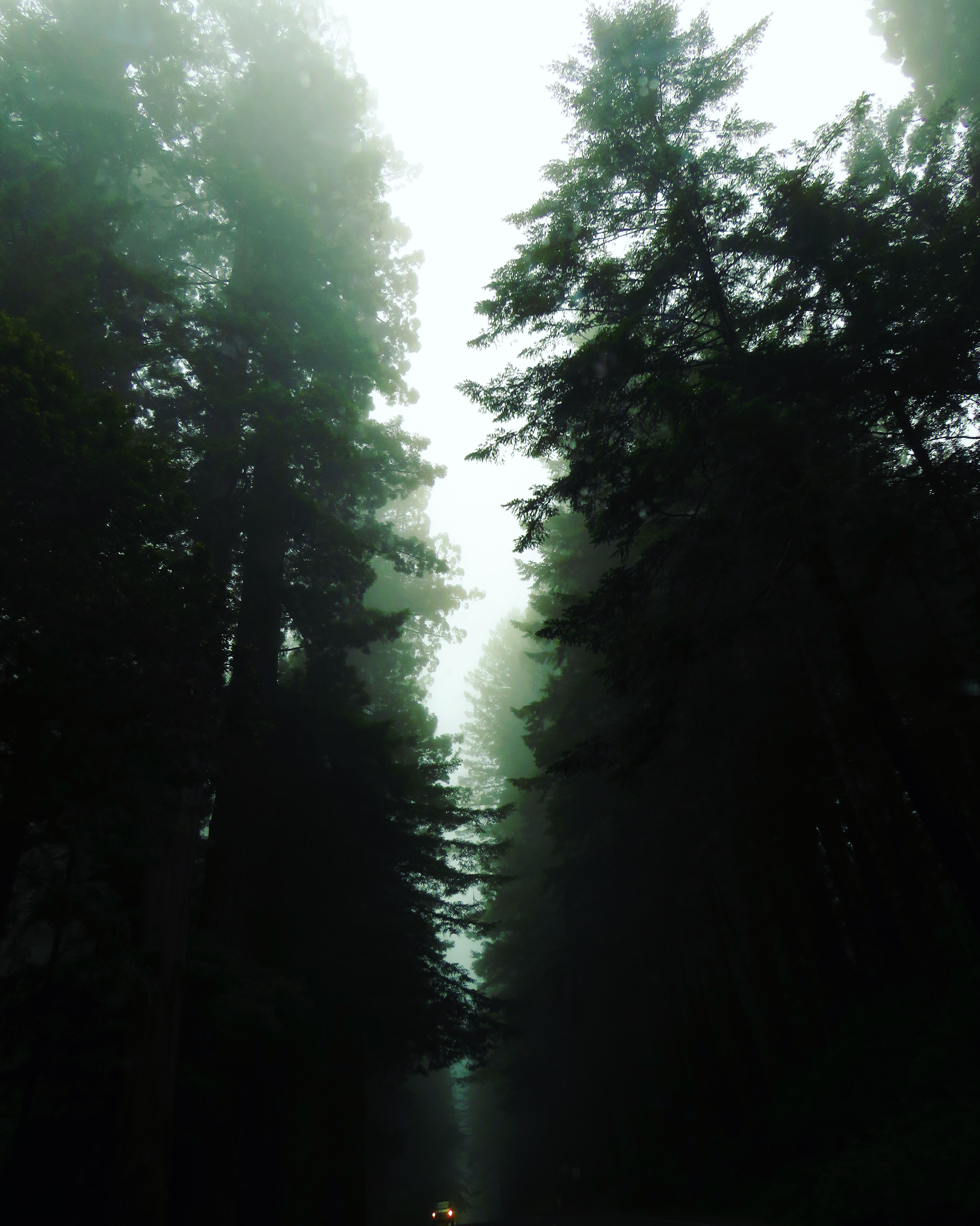 Dark under the redwood trees, Redwood National and State Park. California, USA