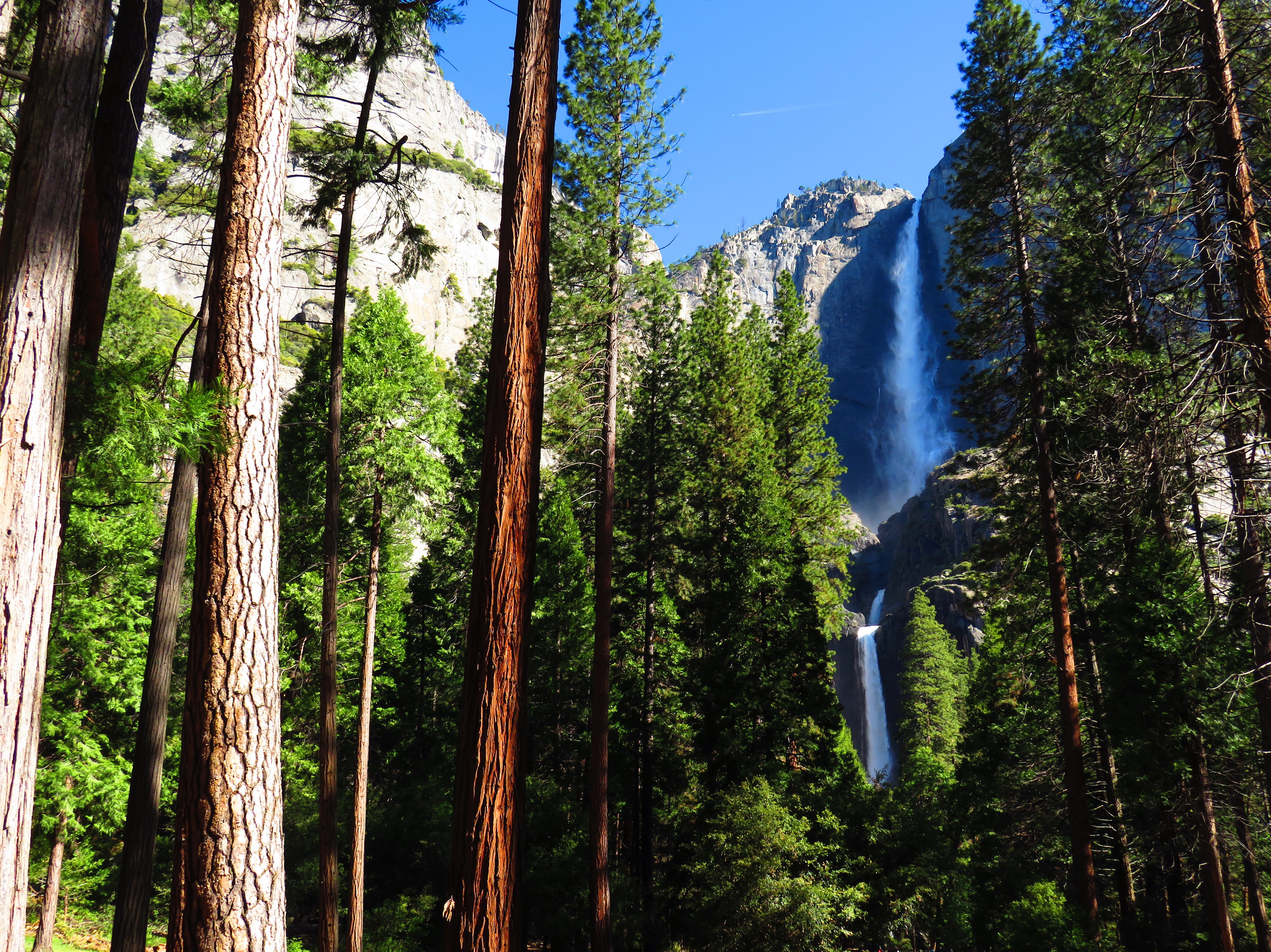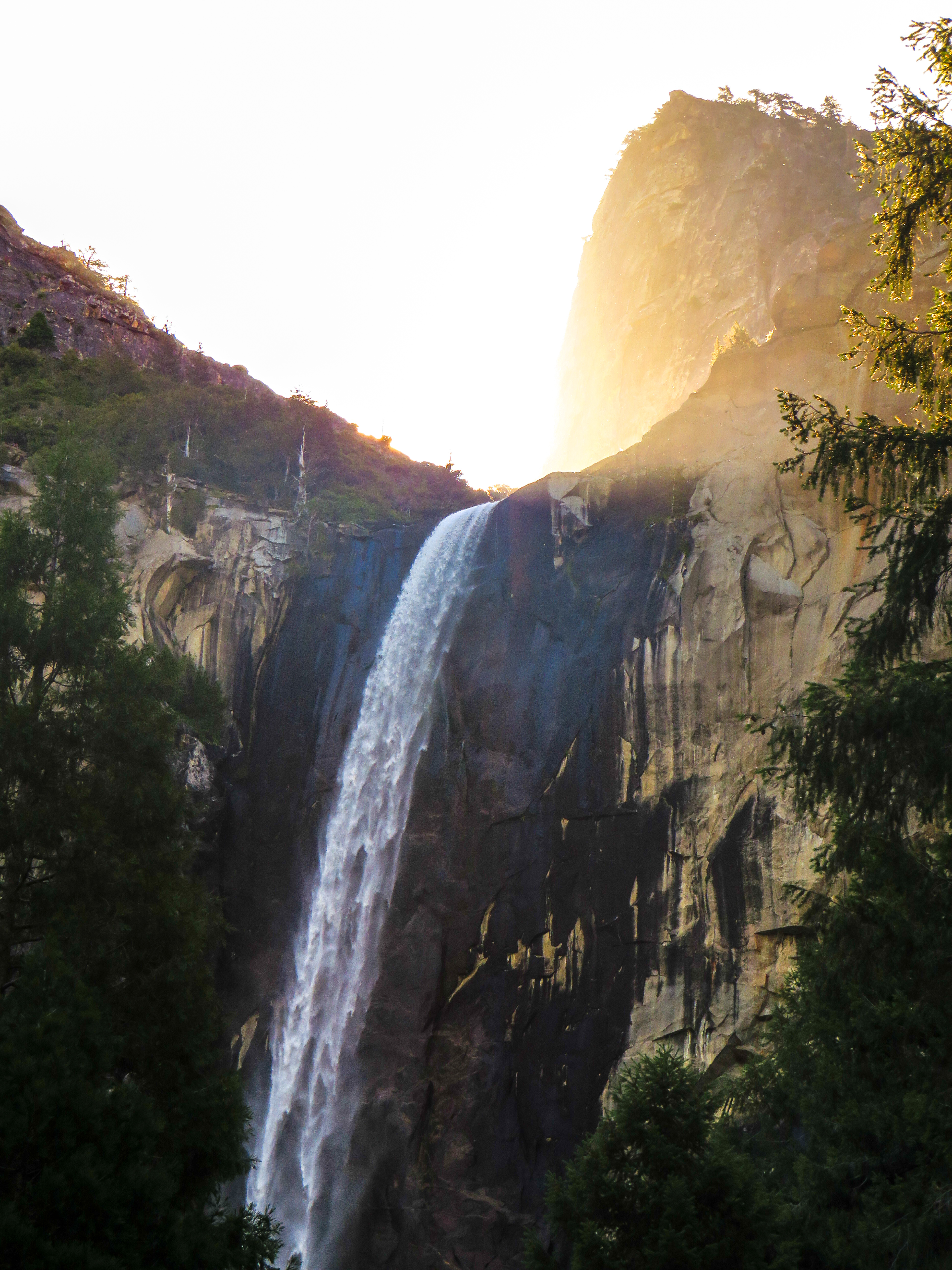 Morning light streaming from above Bridalveil Fall. Yosemite NP. California, USA
