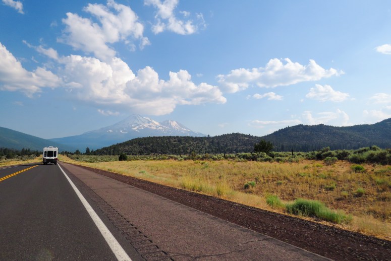 Sunset beyond Black Butte from the slopes of Mt Shasta, California, USA